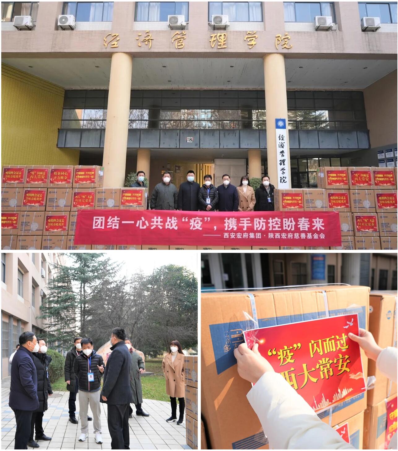 为助力西北大学疫情防控工作,帮助西大师生共渡难关,1月18日,西安宏府集团携手陕西宏府慈善基金会将驰援西大的第二批防疫物资送抵西大长安校区。