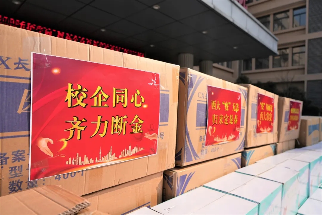伴随防疫物资一同送往西大的还有宏府人深深的牵挂和祝福,“校企同心,‘齐力’断金;‘疫’闪而过,西大常安;西大‘疫’无恙,归来定是春;疫情终会过去,静候春暖花开......”一句句简单的文字里传递出的是宏府与西大同舟共济、风雨同舟的深情厚谊,是勠力同心、共克时艰的决心和信心。